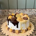 Diametro: 16cm | Altura: 12,5cm | 3 camadas de recheio | Serve 15 pessoas